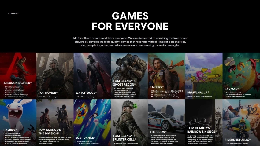 Ubisoft отметила, что делает «игры для всех» — они обогащают жизненный опыт, позволяют проводить время вместе и просто веселиться. И первой в списке своих жемчужин французский издатель поставил Assassin’s Creed — в 2025 году она насчитывала 230 миллионов проданных копий. А общая аудитория серии, включая игроков из подписок и раздач, превышает 155 миллионов человек.