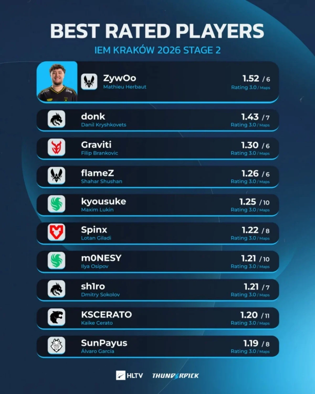 ZywOo обошел donk и стал лучшим игроком групповой стадии IEM Kraków 2026 по Counter-Strike 2