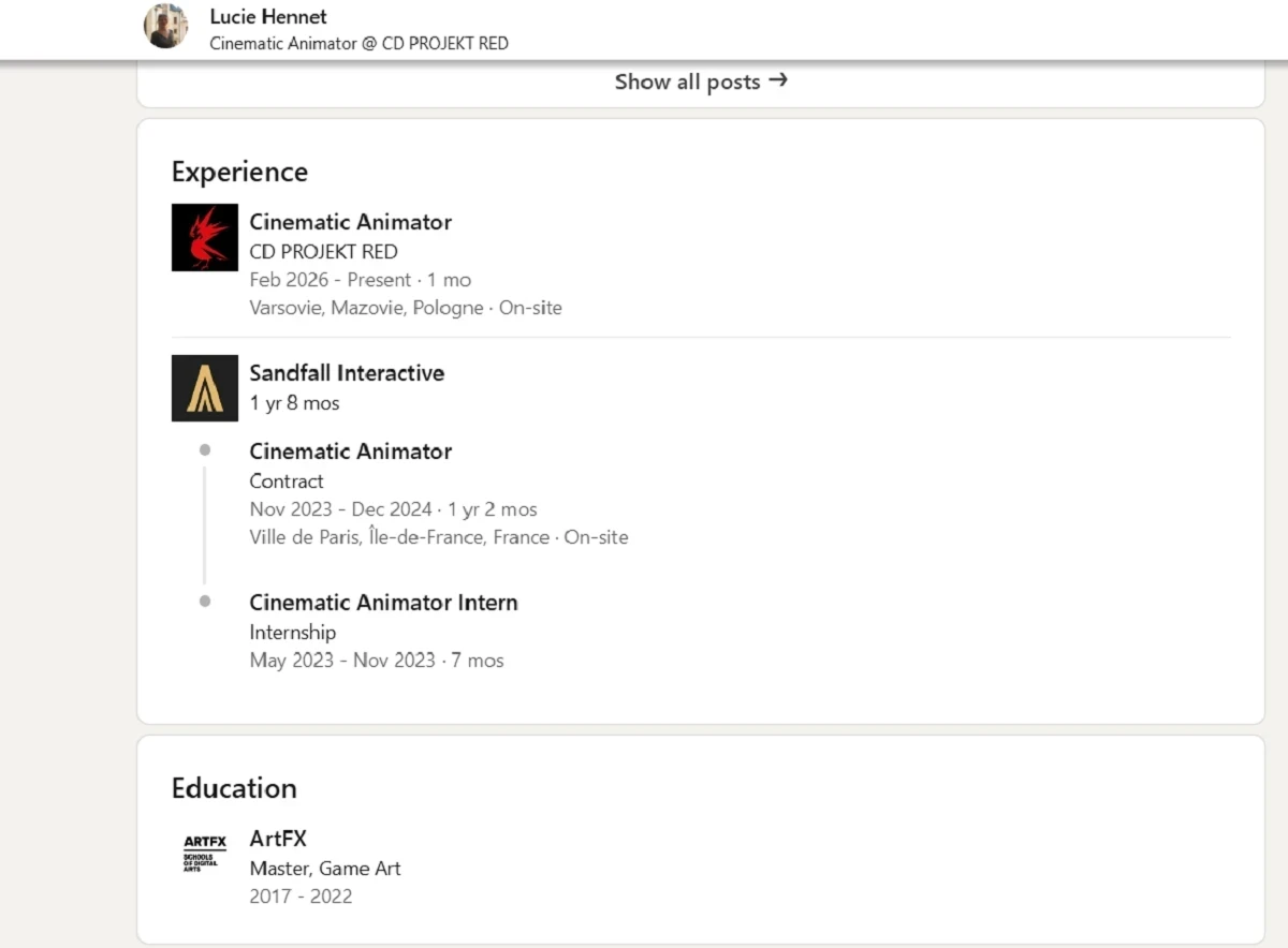 К авторам Cyberpunk 2 и «Ведьмака 4» присоединилась аниматор Clair Obscur: Expedition 33
