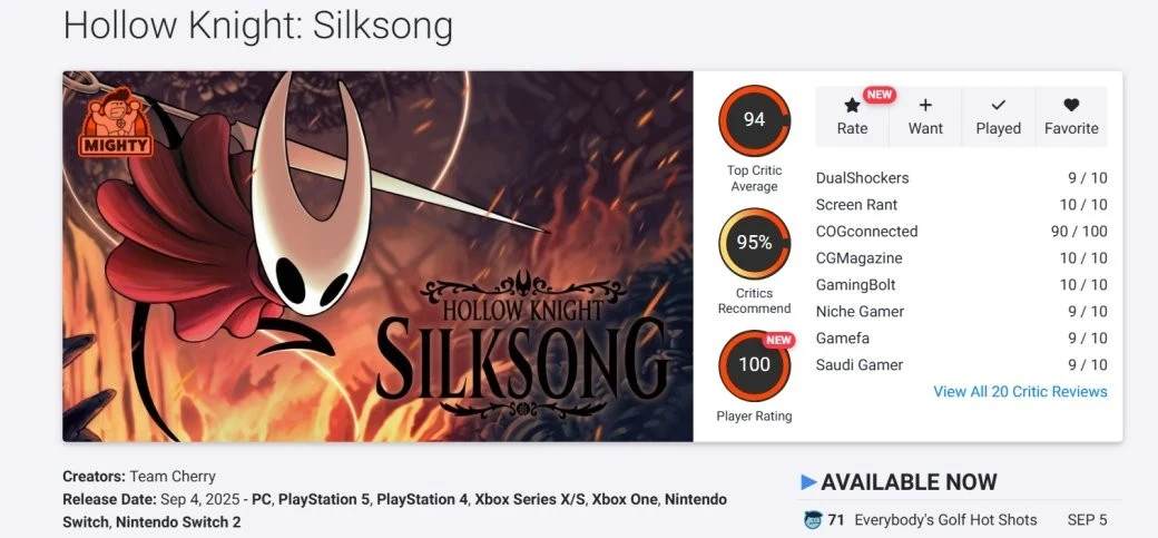 Критики ожидаемо в восторге от Hollow Knight: Silksong — оценка выше 90 баллов